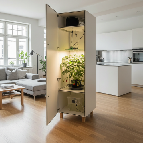 Stabilität & Material: Der Schrank muss feste Seitenwände und eine stabile Rückwand besitzen. Die Innenoberflächen sollten feuchtigkeitsbeständig sein. Die Innenwände sollten weiß (ideal: glanz-weiß) sein, um das Licht optimal auf die Pflanzen zu reflektieren. Dunkle Schränke sollten innen weiß gestrichen oder foliert werden